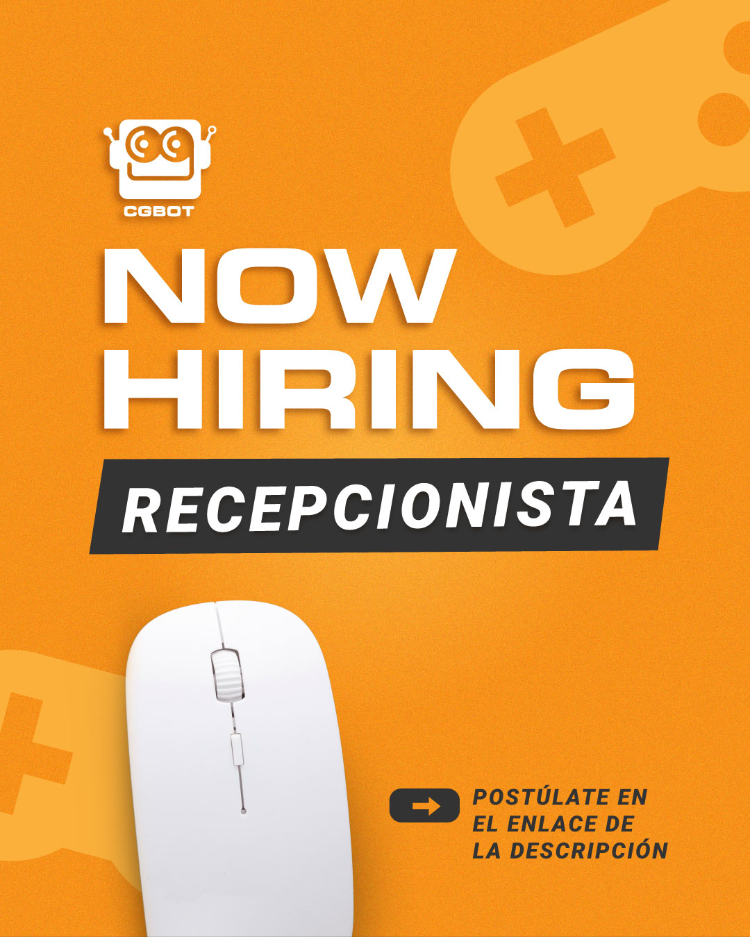 Tenemos una oportunidad increíble para que una RECEPCIONISTA se una al #TeamCGBOT